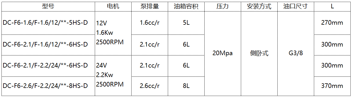 3.液壓泵排量:1.6, 2.1, 2.6cc/r